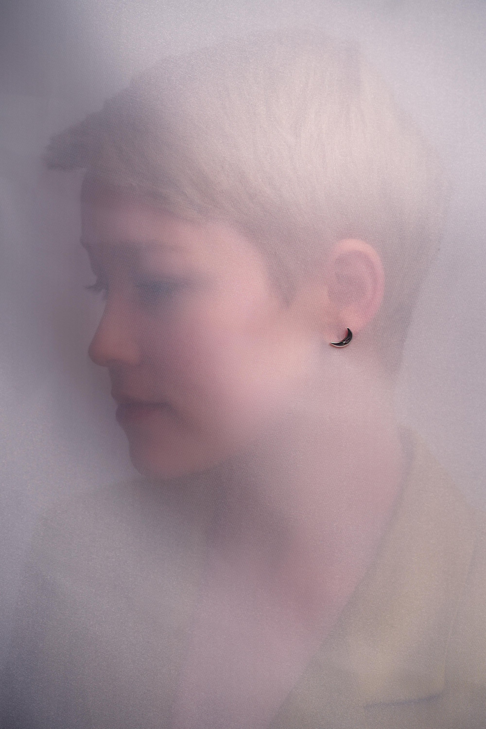 A pair of crescent moon studs with stars carved into them. All metal is sterling silver. These studs are handcrafted using lost wax casting techniques.