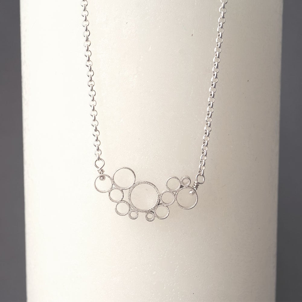 The Signature Bubbles Necklace is the heart of the Bubbles Collection — bigger than the Mini Bubbles, smaller than the Statement Bubbles, and always one of a kind. Each necklace is handcrafted in sterling silver with a unique arrangement of softly rounded bubbles, making every piece a numbered original.